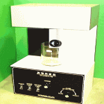 異物検査器 局法に則した光とレンズのメカニズムを組み合わせガラス容器内部の肉眼で見にくい異物の混入を見つける装置です |